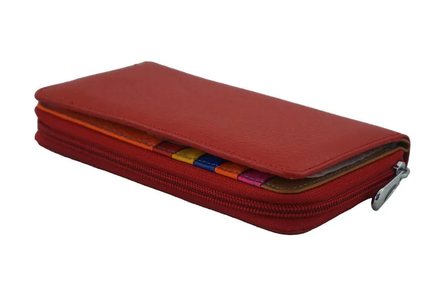Wnętrze portfela: wielokolorowe wnętrze portfela, zapinane na zatrzask, posiada dziewięć miejsc na karty płatnicze, miejsce na dokument ze zdjęciem, cztery kieszenie na paragony, listę zakupów lub bilety oraz dużą przegrodę na banknoty. W części zasuwanej znajdują się dwie przegrody na banknoty, środkowa kieszeń zasuwana miesząca bilon oraz sześć miejsc na karty lub wizytówki. Antykradzieżowy portfel z ochroną RFID dostępny w najnowszej kolekcji Dla Pań będzie idealny rozmiarowo w torebkach klasycznych, plecakach, workach lub większych listonoszkach.