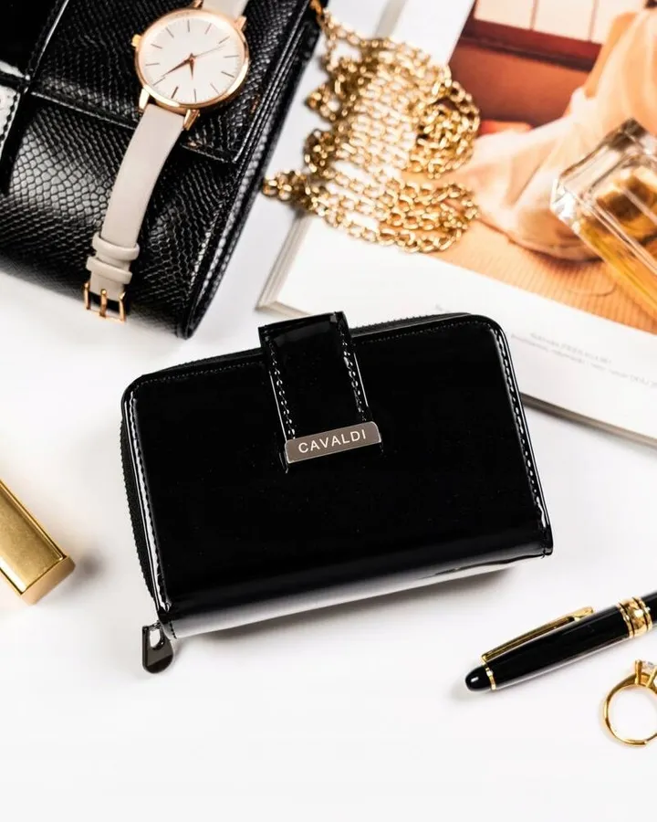 Portfel G-32 jest dedykowany kobietom, które na co dzień potrzebują sporo miejsca do przechowywania, szczególnie na karty kredytowe. Dzięki podwójnej napie na przodzie, zapniesz portfel nawet wtedy, gdy jest on wypełniony po brzegi! Co więcej, nie straci swojego kształtu… Wewnątrz znajduje się także podwójna komora na bilon (zapinana na suwak), dwie przegrody na gotówkę, schowek oraz półtransparentna kieszeń na zdjęcia bliskich Ci osób. Wewnątrz portfela znajdują się dwa schowki po długości oraz dwanaście przegródek na katy kredytowe.