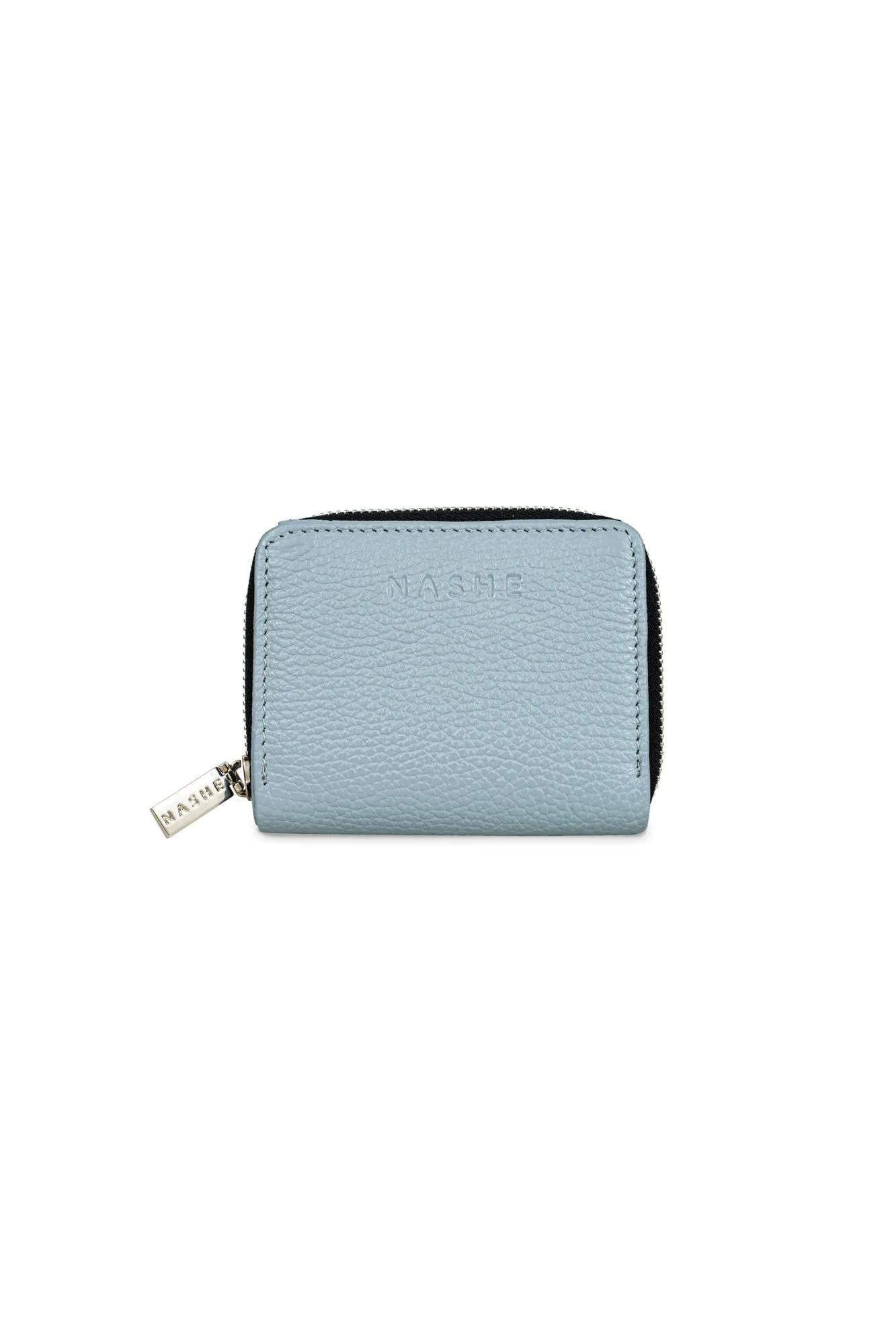 PORTFEL SKÓRZANY MAŁY - no.1 - niebieski - srebrne okucia
