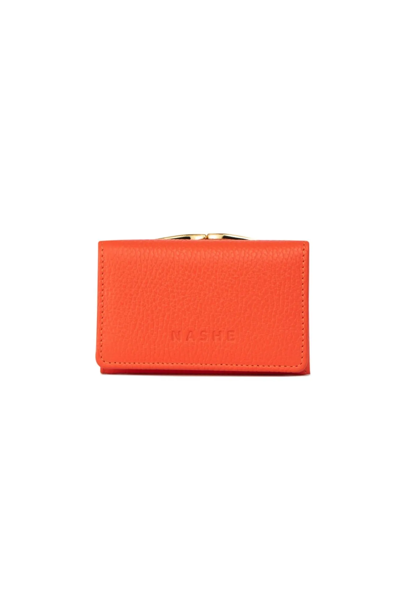 PORTFEL SKÓRZANY Z BIGLEM - no.3 - pomarańczowy - złote okucia