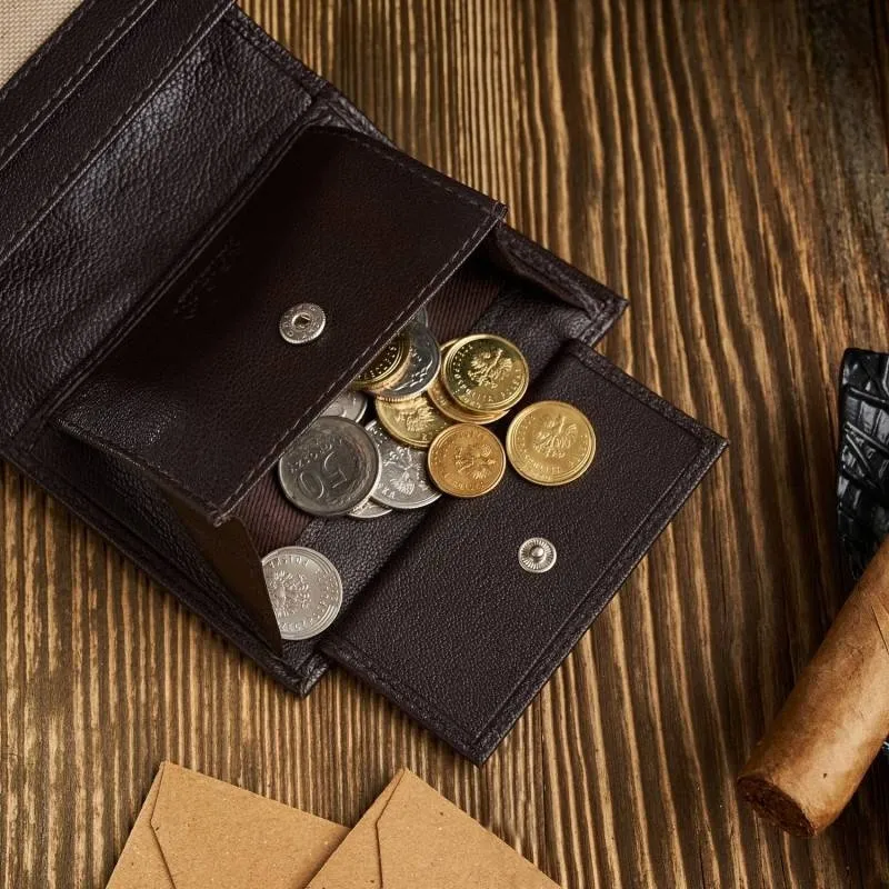 Portfel skórzany IN-29 jest klasyczną propozycją dla mężczyzn lubiących poręcznej wielkości akcesoria galanteryjne. Mieści się w kieszeni każdych spodni i marynarki, by zawsze mógł stanowić modne uzupełnienie stylizacji. Portfel dzielony jest na dwie sekcje, obie zapinane na solidne napy. W pierwszej znajdziesz sześć przegródek na karty oraz schowek. Druga sekcja skrywa trzy przegródki, trzy schowki i kieszeń na bilon. Dodatkowo, portfel zawiera również dwie przegrody na banknoty. Jesteśmy przekonani, że wszystkie niezbędne drobiazgi znajdą tu swoje miejsce.