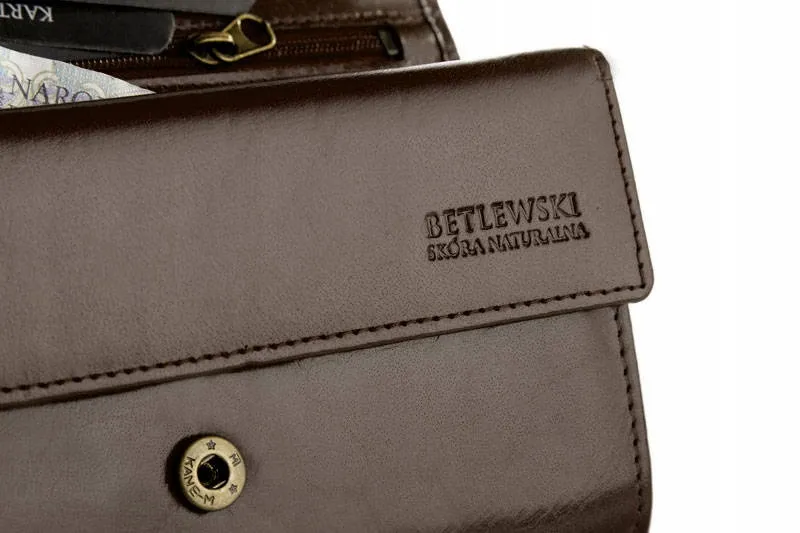 Portfel skórzany BETLEWSKI BPD-BF-10 BRĄZOWY