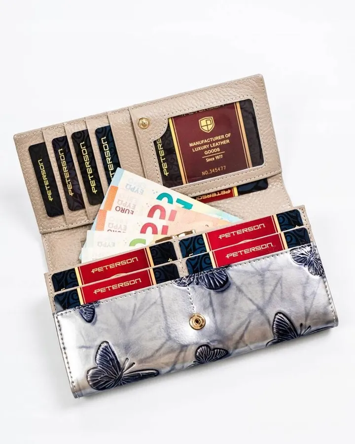 Portfel skórzany Peterson PTN 421028-BF srebrny