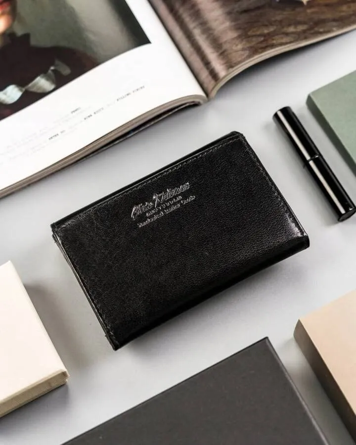Odszyty bardzo trwale z doskonałej jakości skóry naturalnej o gładkiej fakturze. Portfel o klasycznej stylistyce. Model w orientacji pionowej, dwusekcyjny, zapinany bezpiecznym i trwałym zatrzaskiem. Wyposażony w technologię RFID BLOCKING SYSTEM.