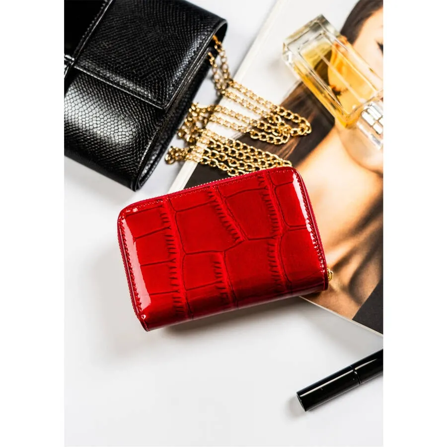 Portfel z naturalnej skóry z lakierowaną powłoką, odporną na zabrudzenia. Elegancki wzór tłoczonej skóry krokodyla dodaje charakteru i unikalnego wyglądu. Portfel posiada 10 miejsc na karty, 3 przegrody na banknoty i 2 miejsca na większe dokumenty.