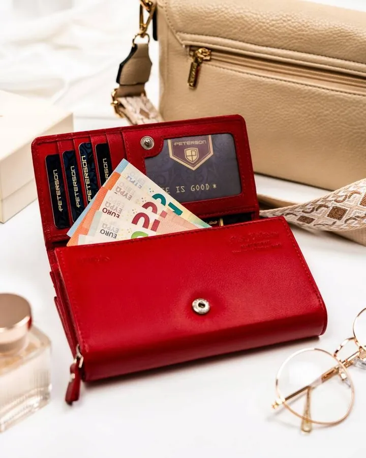 Portfel skórzany Peterson PTN KA-25 czerwony z czarnym obszyciem