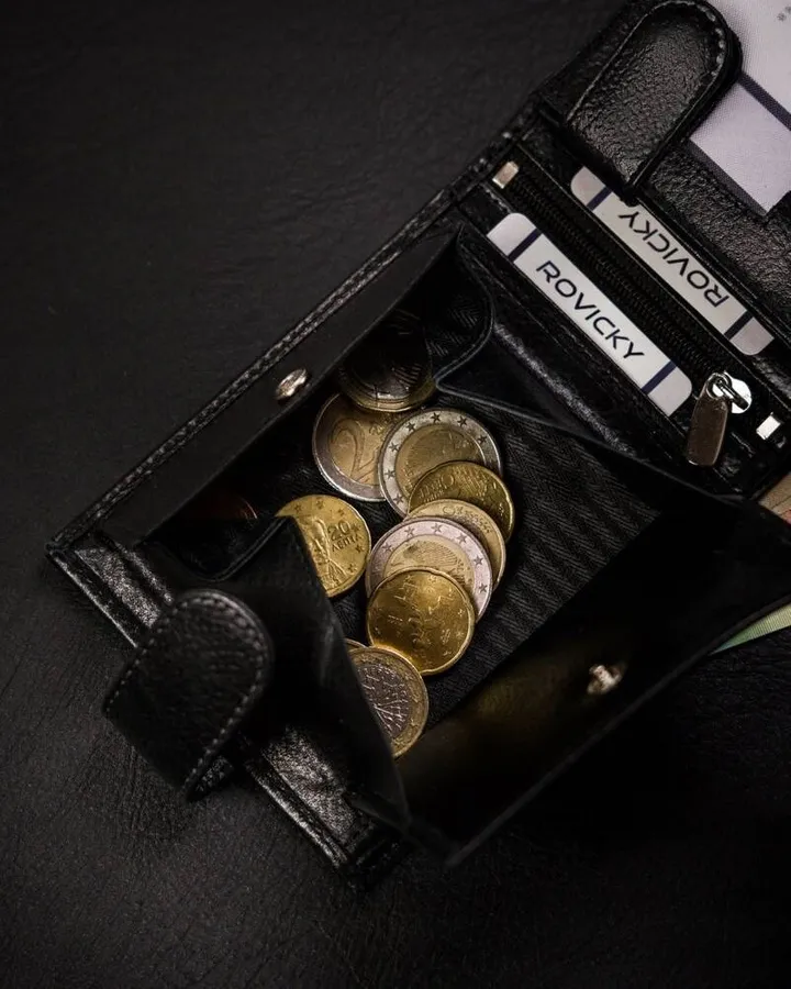 Portfel o klasycznej stylistyce. Model w orientacji poziomej zapinany na zatrzask i suwak. Wykonany ze skóry naturalnej. Portfel został wyposażony w technologię RFID BLOCKING SYSTEM.