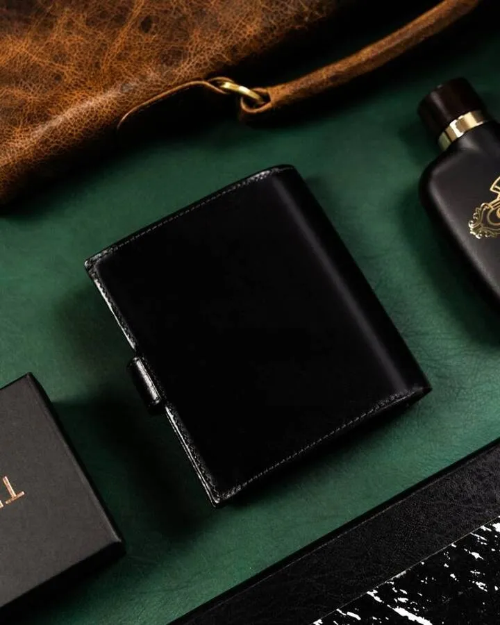 Odszyty z wysokogatunkowej bydlęcej skóry. Wykończony trwałymi materiałami jak metalowy suwak, zatrzask i logo, odporna na otarcia podszewka czy mocne nici. Wyposażony w technologię RFID. Mieści dowód rejestracyjny.