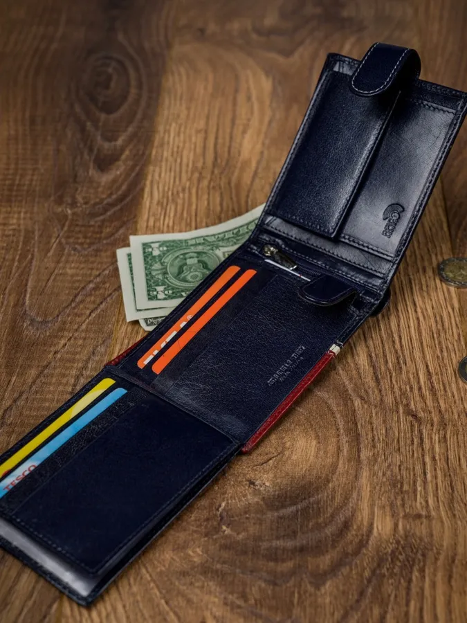 Portfel skórzany czerwono- granatowy Rovicky 324L-RBA-D NAVY-RED