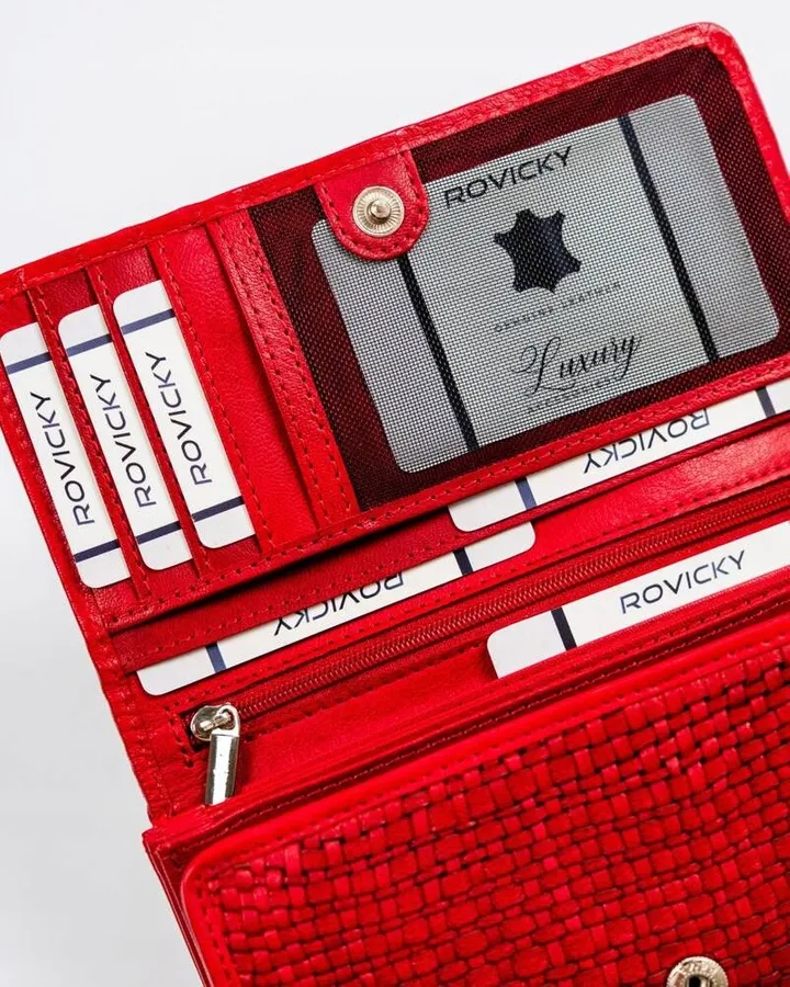 Portfel skórzany Rovicky R-614-DDW czerwony
