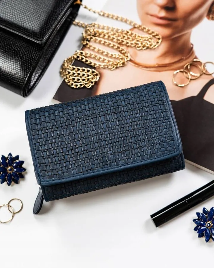 Odszyty bardzo trwale z doskonałej jakości przeplatanej skóry naturalnej, tworzącej subtelną kratkę. Portfel o oryginalnej stylistyce. Model w orientacji poziomej zapinany na trwały i solidny zatrzask. Wyposażony w system RFID.