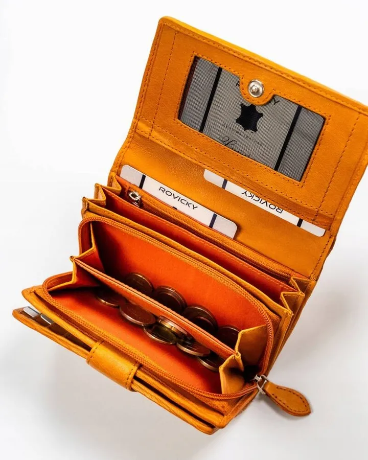 Portfel skórzany Rovicky R-615-DDW żółty