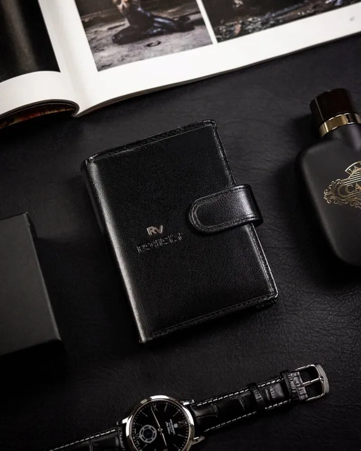 Portfel skórzany Rovicky RV-70616-9-BCA czarny