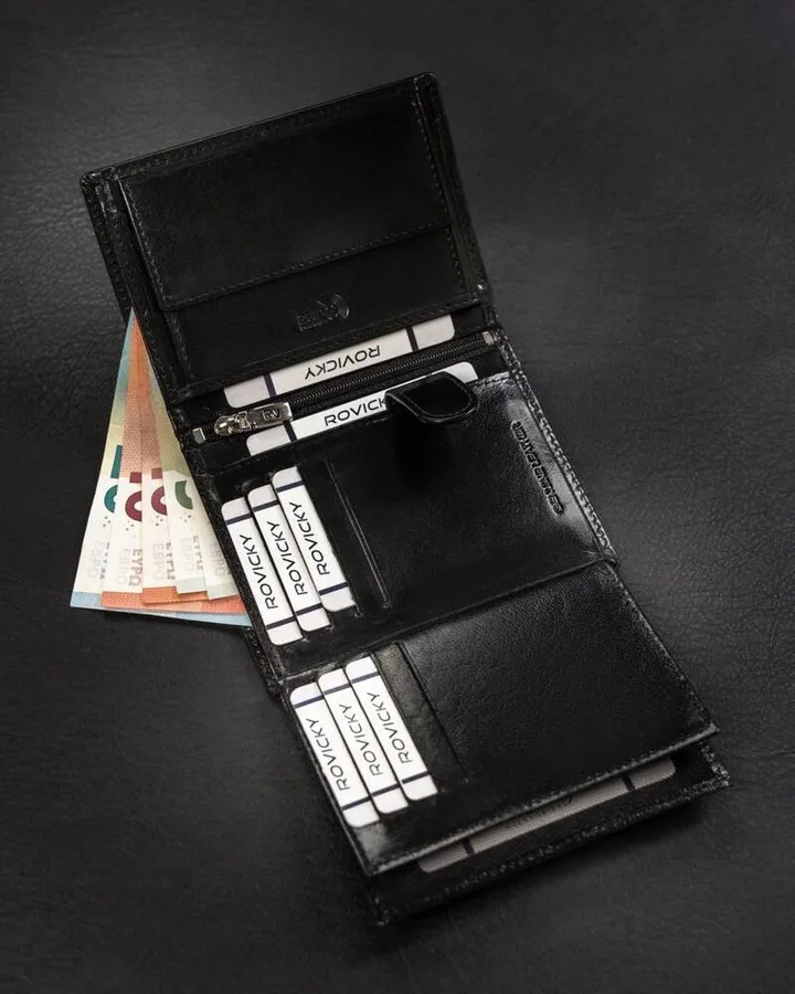 Portfel skórzany Rovicky RV-70616-BCA czarny