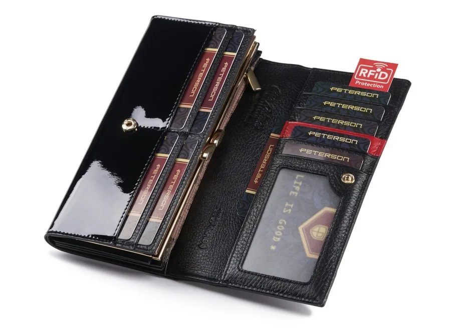 Skórzany portfel czarny Peterson PTN BC-467-BLACK RED