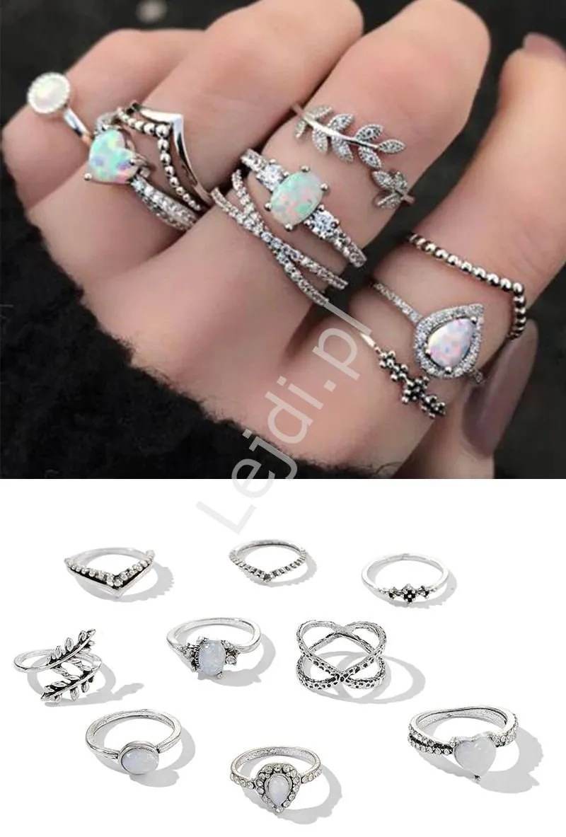 Komplet 9 pierścionków w stylu boho