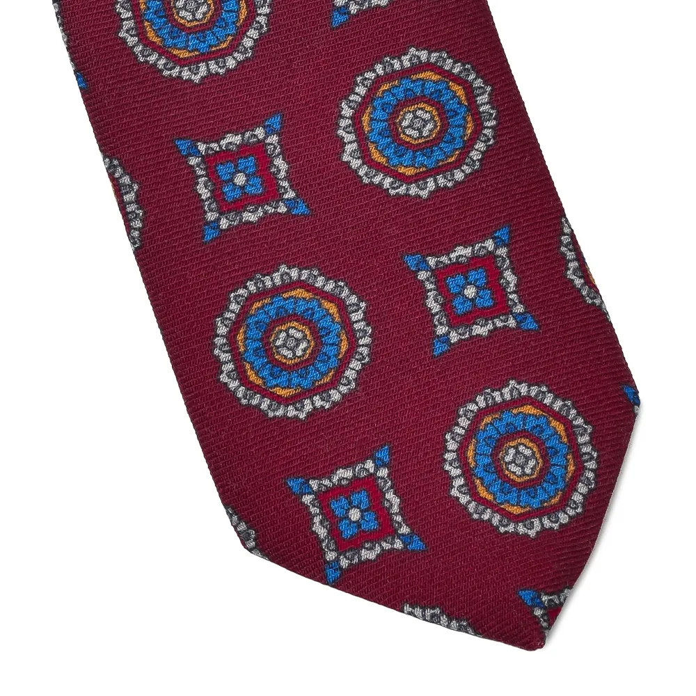 Ciemnoczerwony krawat wełniany VAN THORN w duży wzór