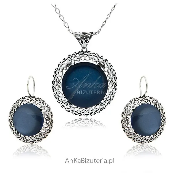 Bizuteria w stylu art deco .komplet srebrny z niebieskim kamieniem