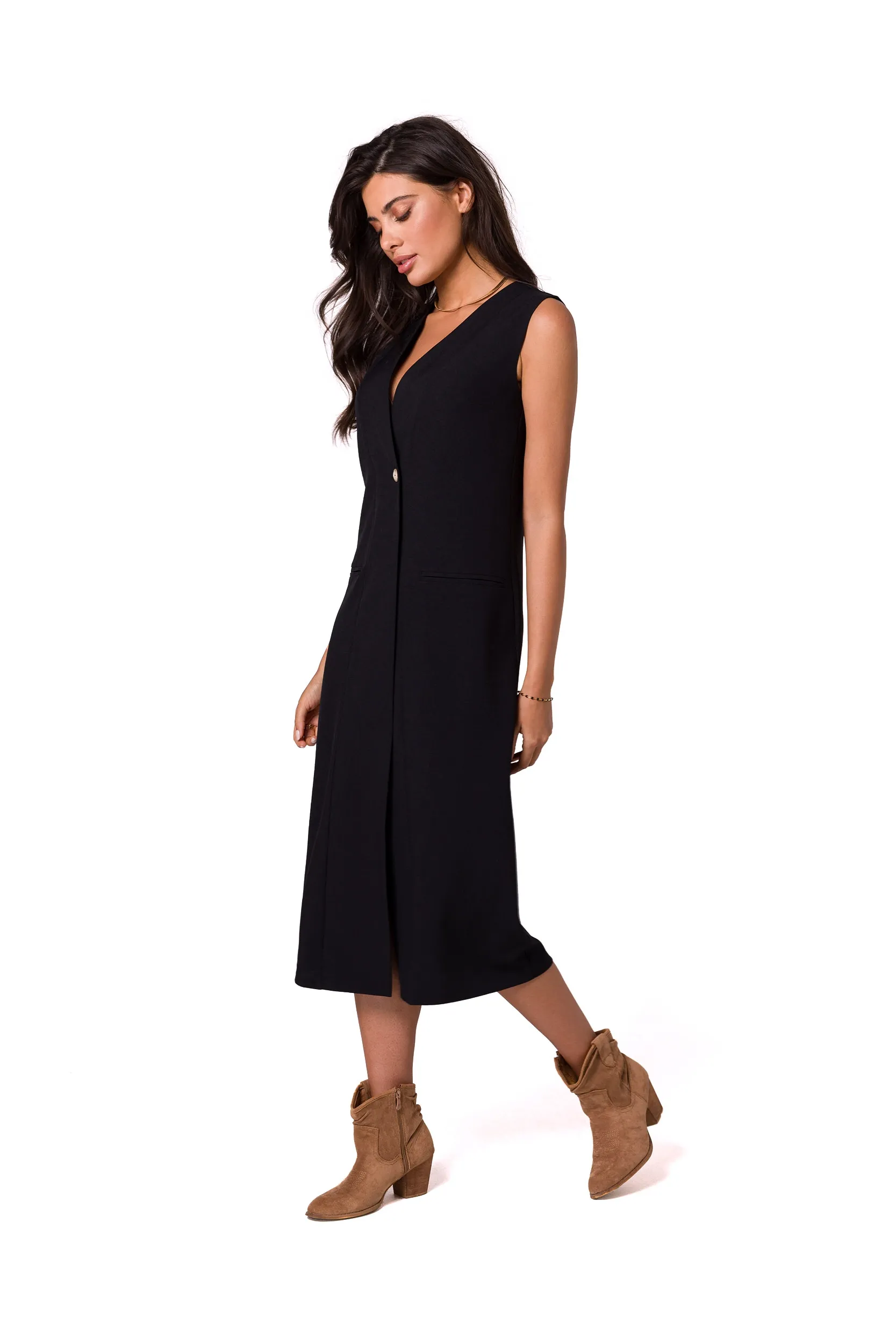 Prosta Midi Sukienka Zapinana na Guziki - Czarna