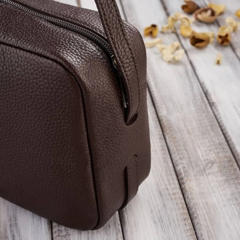 Listonoszka na ramię posiada jedną komorę główną, która zapinana jest na zamek błyskawiczny. Wnętrze zostało wykończone solidną podszewką. Wewnątrz głównej komory, znajdują się dwie kieszenie. Jedna zapinana na zamek, a druga kieszeń wsuwka. Pasek na ramię w tym modelu został zamontowany w niebanalny i elegancki sposób. Okala on dno oraz boki torebki, a na rogach torby został przeciągnięty przez korpus. Dzięki temu model IN-62 jest klasyczny w formie, a zarazem nowoczesny. Porządna, przyjemna w dotyku skóra naturalna groszkowa gwarantuję, że ten model będzie służył ci przez wiele lat. Ciemnobrązowy kolor torebki idealnie sprawdzi się jako dodatek do eleganckich stylizacji, jak i tych na co dzień!