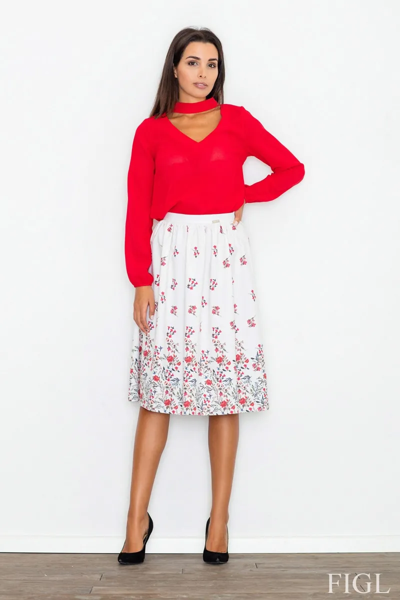 Ecru Spódnica Rozkloszowana Midi w Kolorowe Kwiaty