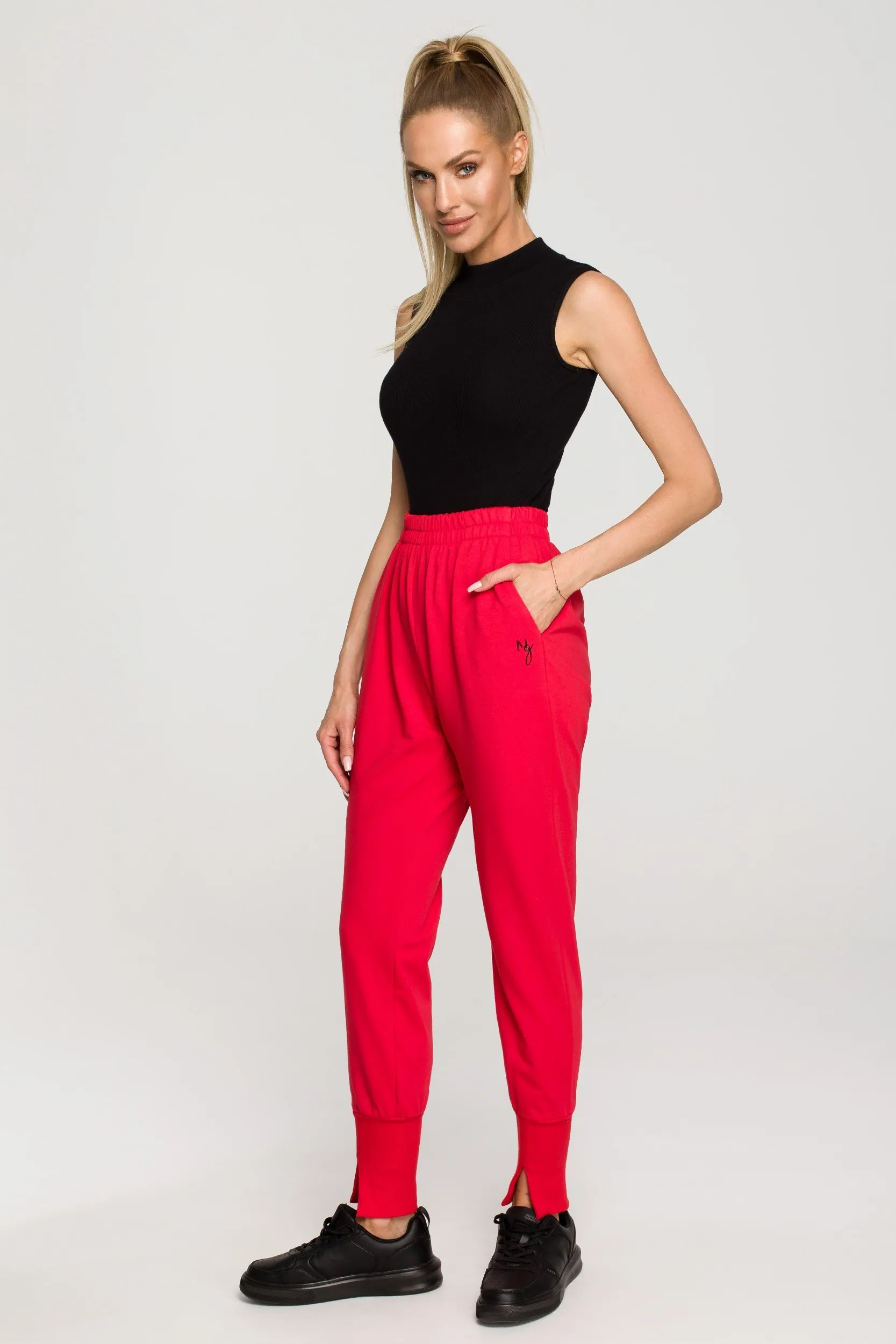171,90 złPudrowe Dresowe Spodnie z Prostymi Nogawkami