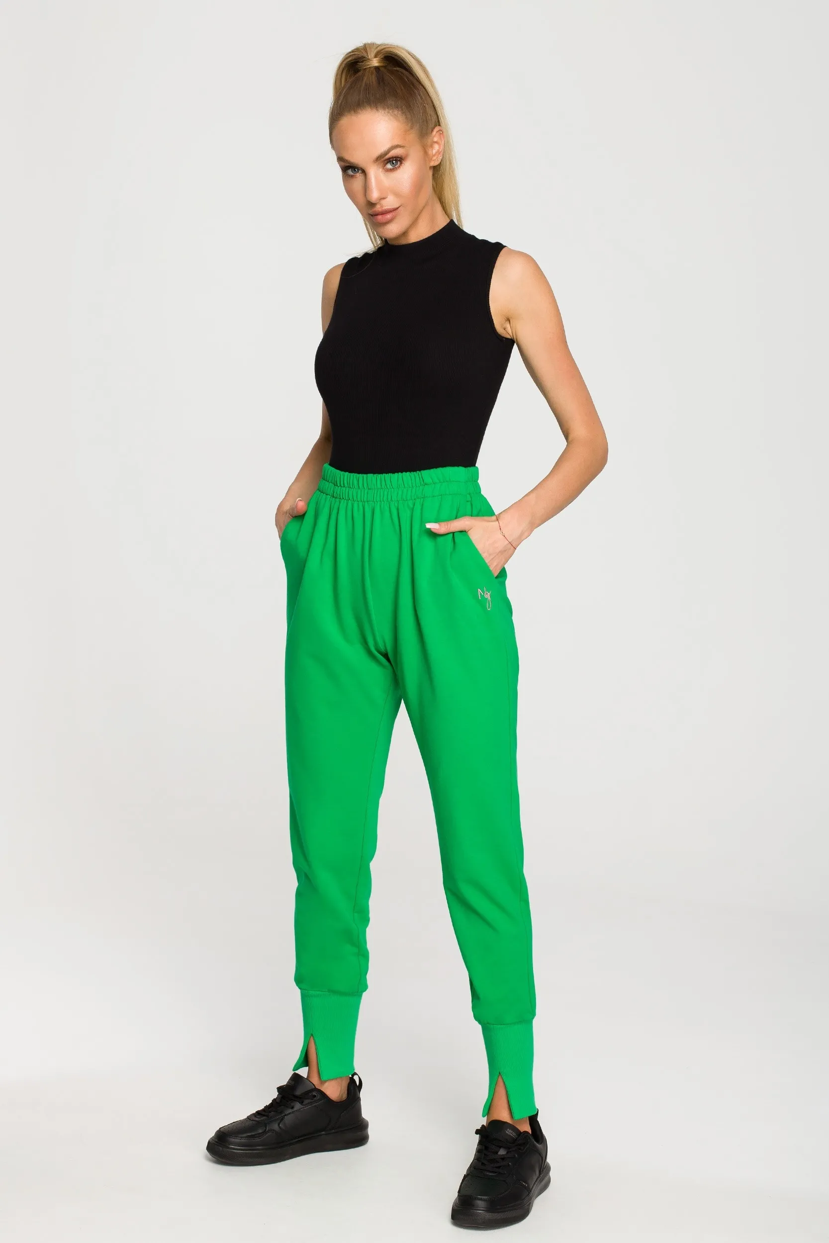 Cytrynowe Dresowe Spodnie z Prostymi Nogawkami