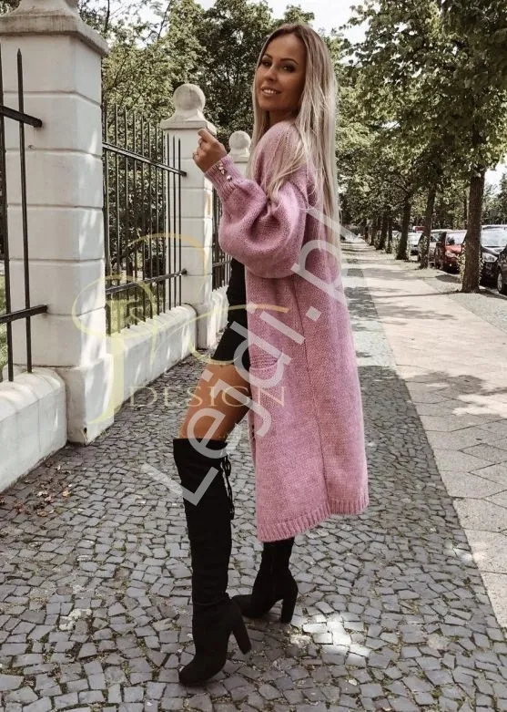 Kardigan damski w odcieniach pudrtowo różowym. Kardigan dobrej jakości Polskiego Producenta. Akryl z wełną zapenia miękkość swetra i ciepło. Kardigan będzie doskonały na wiosnę, lato i chłodną jesień.