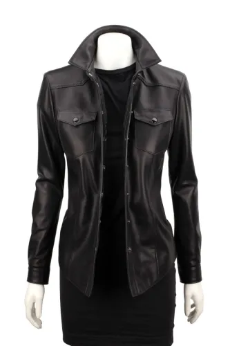 ALC450 - Czarna koszula damska ze skóry naturalnej DORJAN
