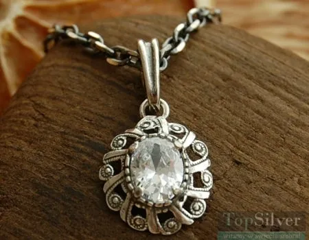 Przedstawiamy Państwu delikatny i zmysłowy srebrny wisiorek, w którego centralnym miejscu zakuto szmaragd (synt). Stylistyka zawieszki to żywe nawiązanie do okresu secesji w jubilerstwie. Niewątpliwie jest to biżuteria, która zwracać będzie uwagę Wymiar motywu zdobniczego to 1,4 X 1,3cm. Wymiar kamienia to 6 X 8mm. SREBRO PRÓBY 925. Oksydowane W ofercie naszego sklepu znajdziesz także kolczyki, pierścionek oraz bransoletkę do kompletu. Kupując w zestawie zapłacisz mniej. W naszej ofercie znajdziesz także pasujący do wisiorka srebrny łańcuszek.