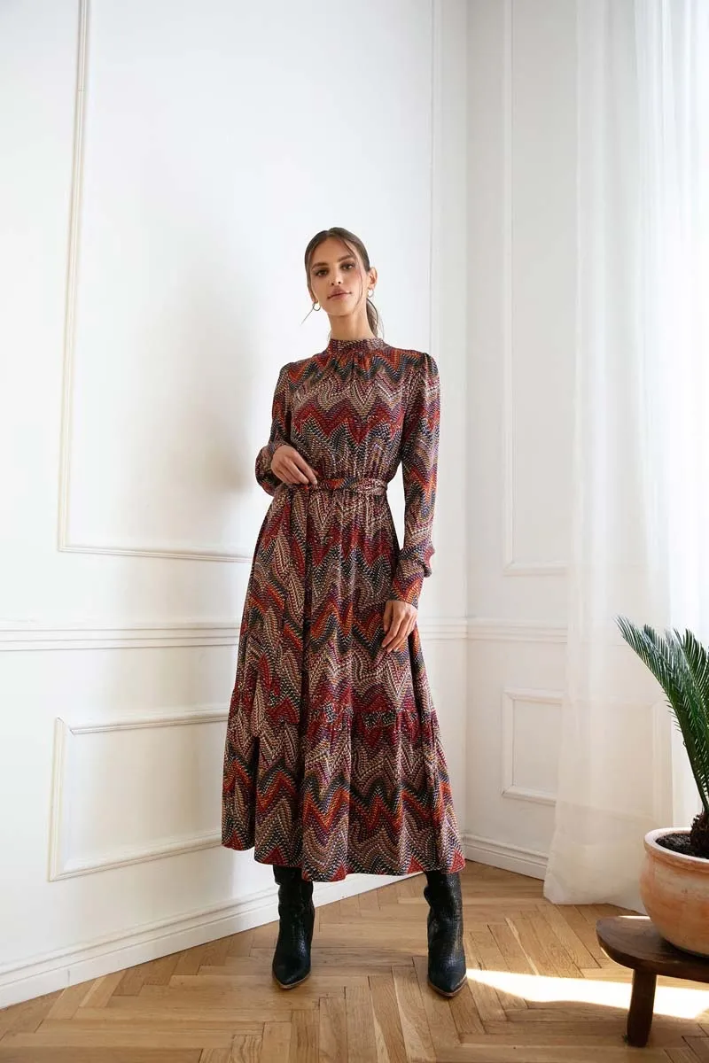 Długa Sukienka ze Stójką w Azteckie Wzory - Wzór 1