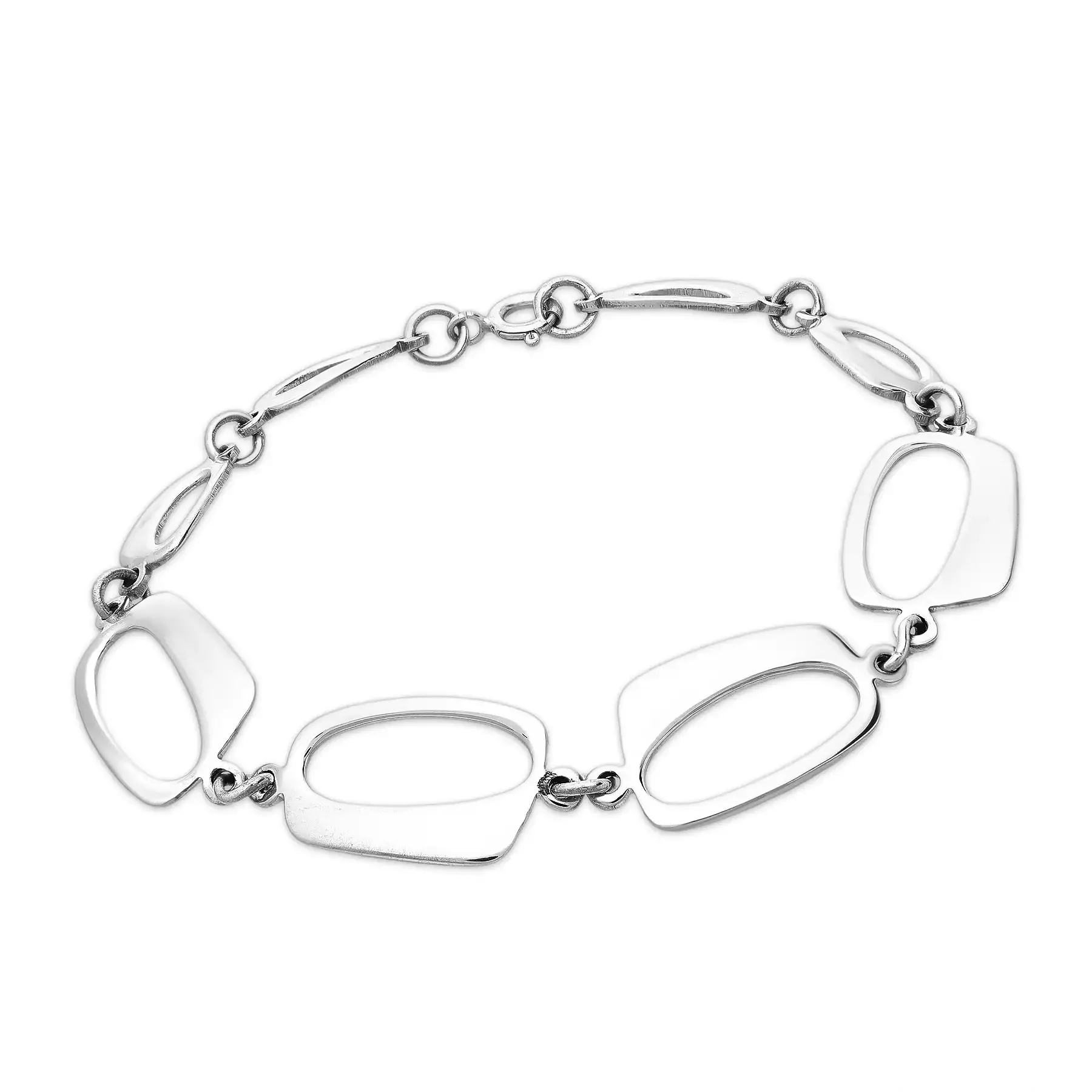 Delikatna ale niezwykle urocza bransoletka, wykonana w całości z najwyższej jakości rodowanego srebra próby 925. Środkowy element wysadzany drobnymi kryształowymi cyrkoniami, natomiast boki diamentowane, dzięki czemu bransoletka nabrała pięknego blasku. Bardzo efektownie prezentuje się na nadgarstku.