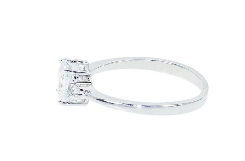 Rodowany srebrny pierścionek z dużą cyrkonią
