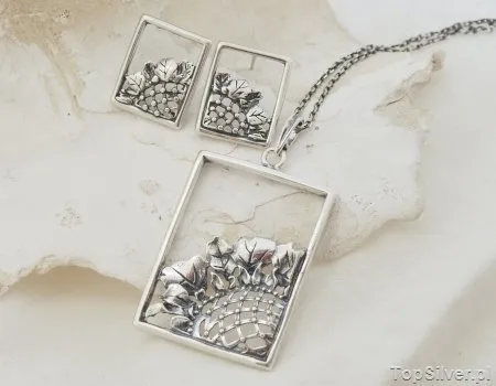 Wytworny, srebrny zestaw biżuterii w składzie: kolczyki, bransoletka, wisiorek oraz pierścionek – stylistyką nawiązujące do najpiękniejszego okresu dla jubilerstwa czyli secesji. W misterny a zarazem delikatny wzór wkomponowano pięknie wybarwione ametysty(syntetyczne). Biżuteria wykonana została z dbałością o każdy szczegół. Biżuteria z pewnością będzie przykuwać uwagę i sprawi, iż każdy poczuję się w niej piękniejszy 🙂 Wymiar pojedyńczego motywu zdobniczego: 11x22mm Srebro: 925 W naszej ofercie znajdziesz także te elementy do kupienia osobno. To świetny pomysł na prezent.
