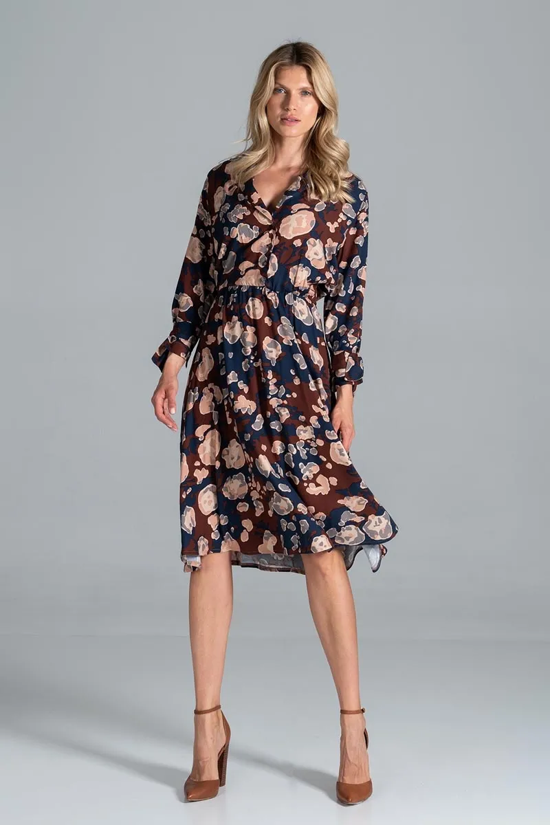 Rozkloszowana Sukienka na Guziki z Żakietowym Kołnierzykiem – Wzór 127