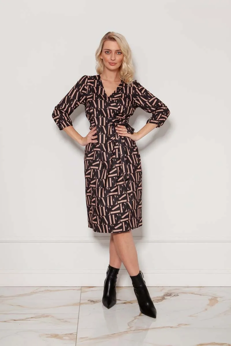 Rozkloszowana Sukienka z Szarfą – Czarna