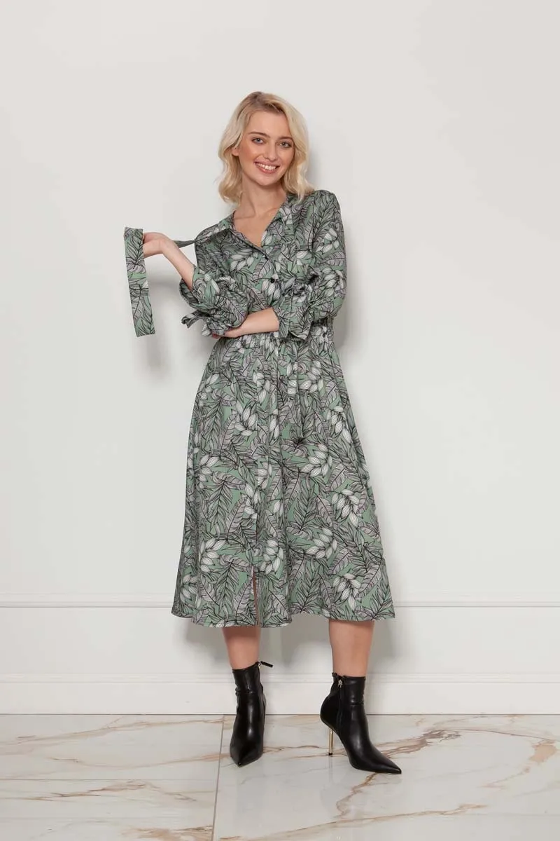 Dopasowana Sukienka z Troczkami na Bokach - Zielona