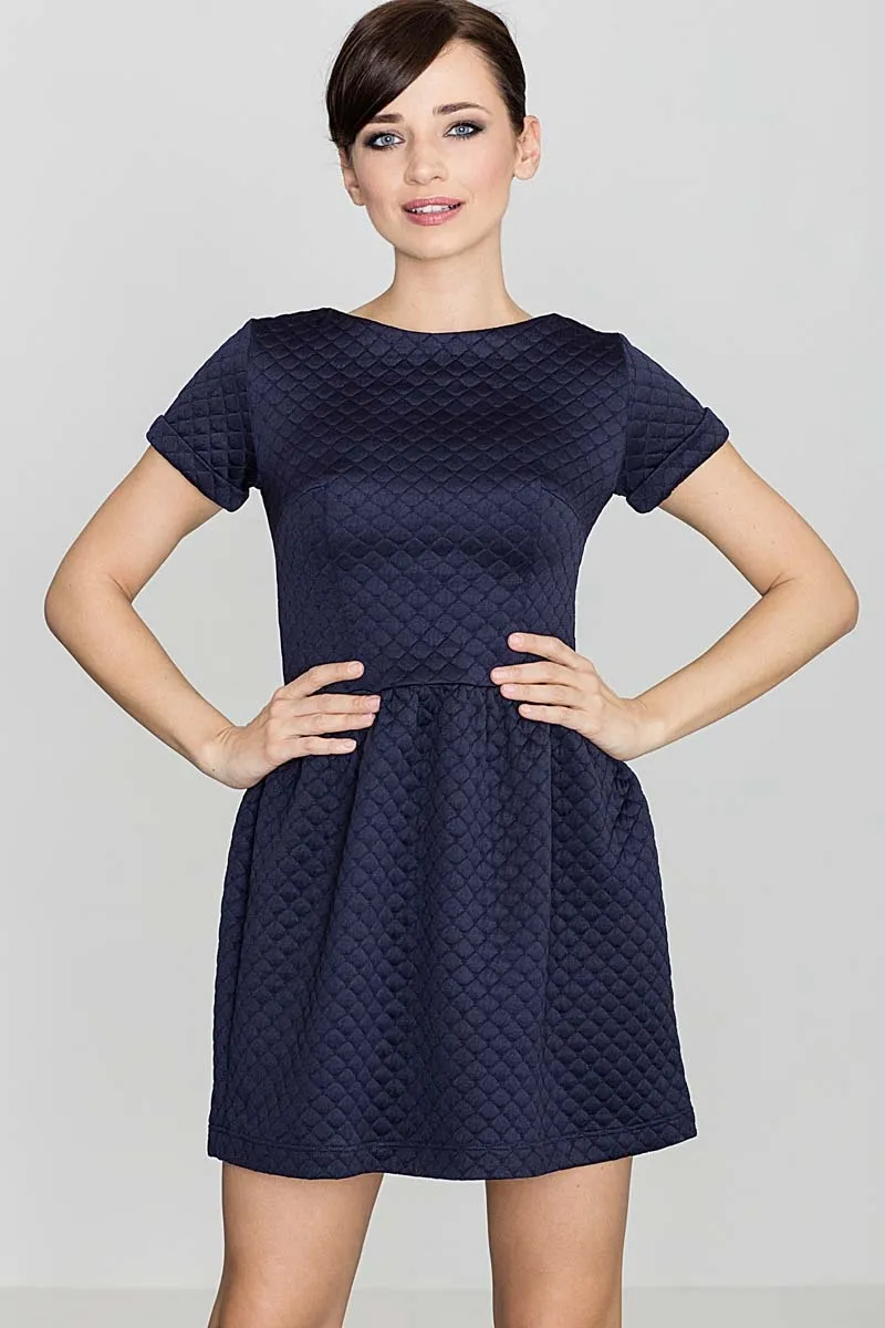 Niebieska Pikowana Sukienka z Krótkim Rękawem