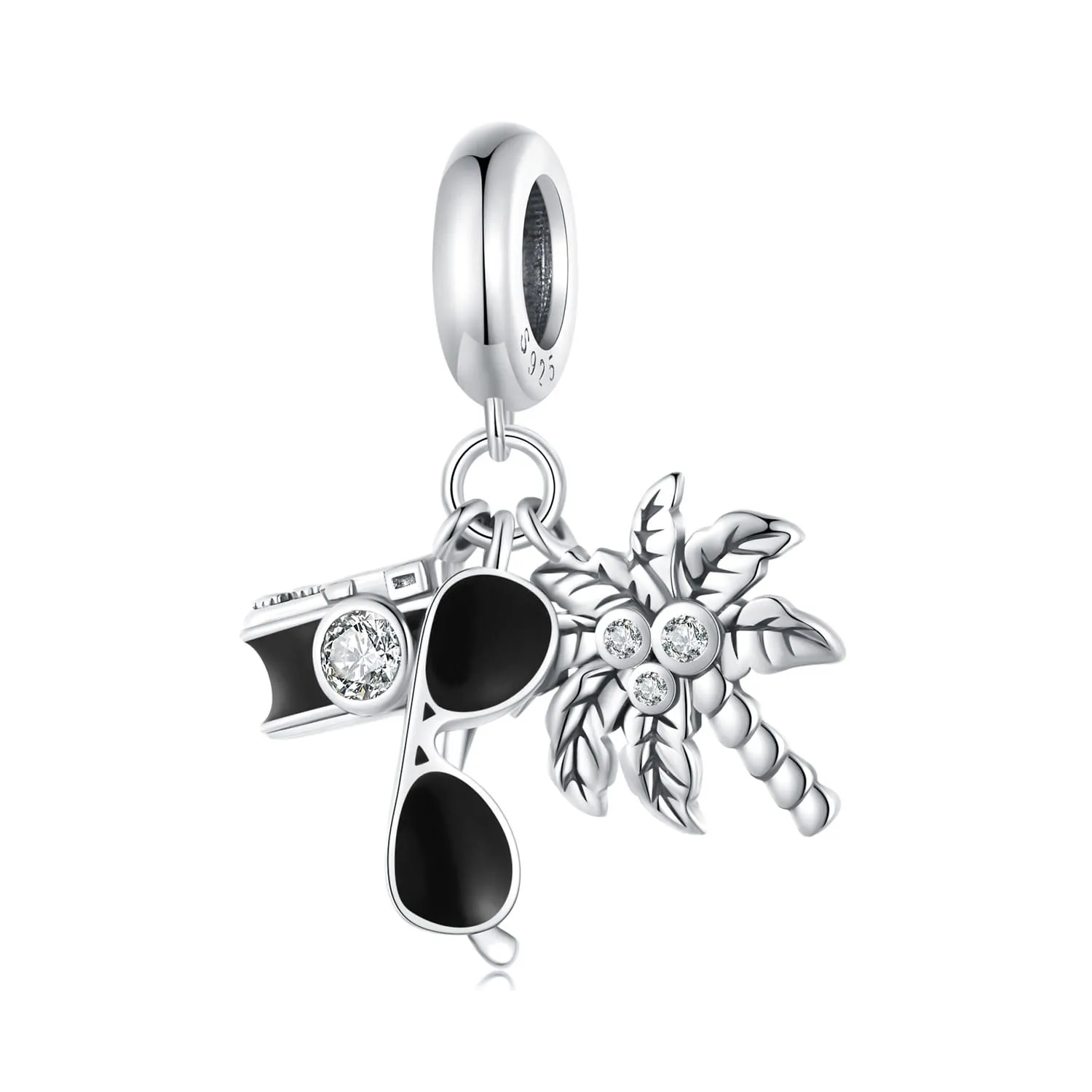 Okulary, palma i aparat srebrny charms zawieszka beads
