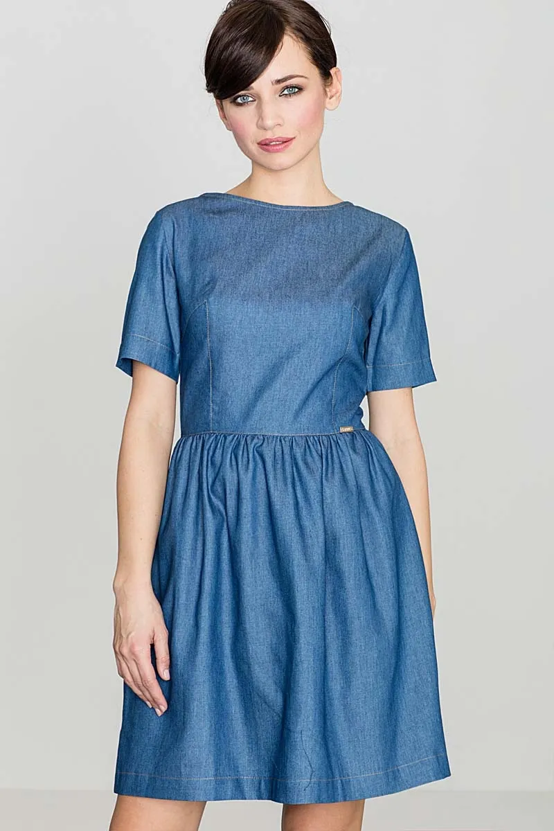 Niebieska Bawełniana Sukienka z Krótkim Rękawem