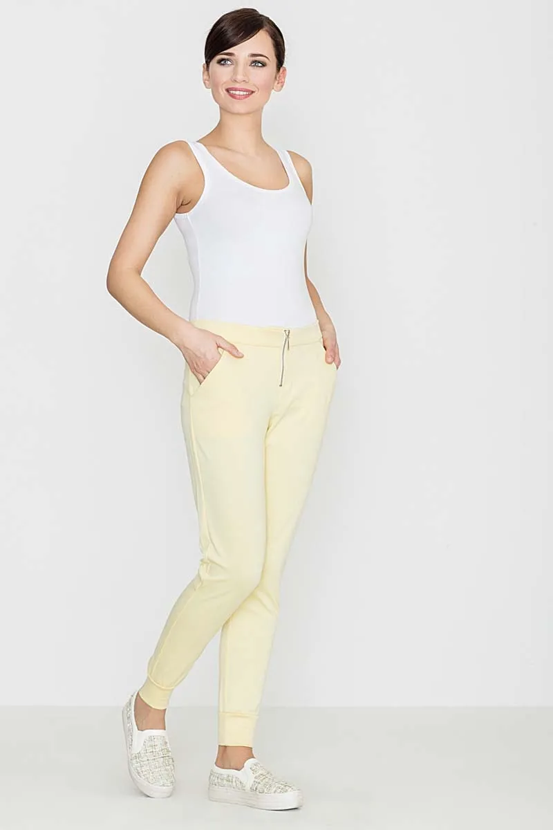 Różowe Komfortowe Spodnie ze Złotym Suwakiem