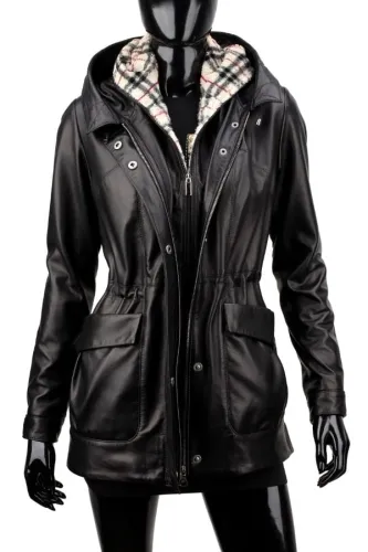 IGA450 - kurtka parka skórzana damska z regulacją w talii DORJAN