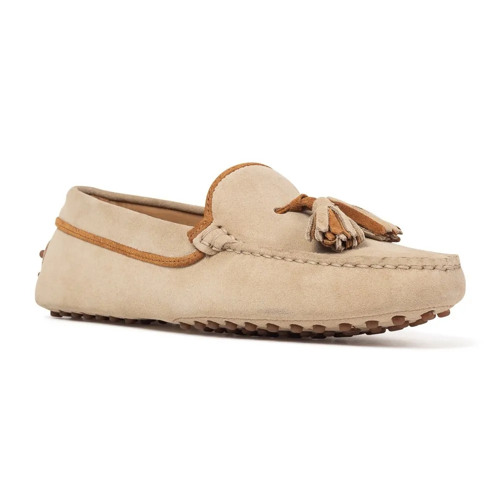 Cavaccino damskie driving shoes z zamszu beżowo-brązowe z frędzlami 39,5