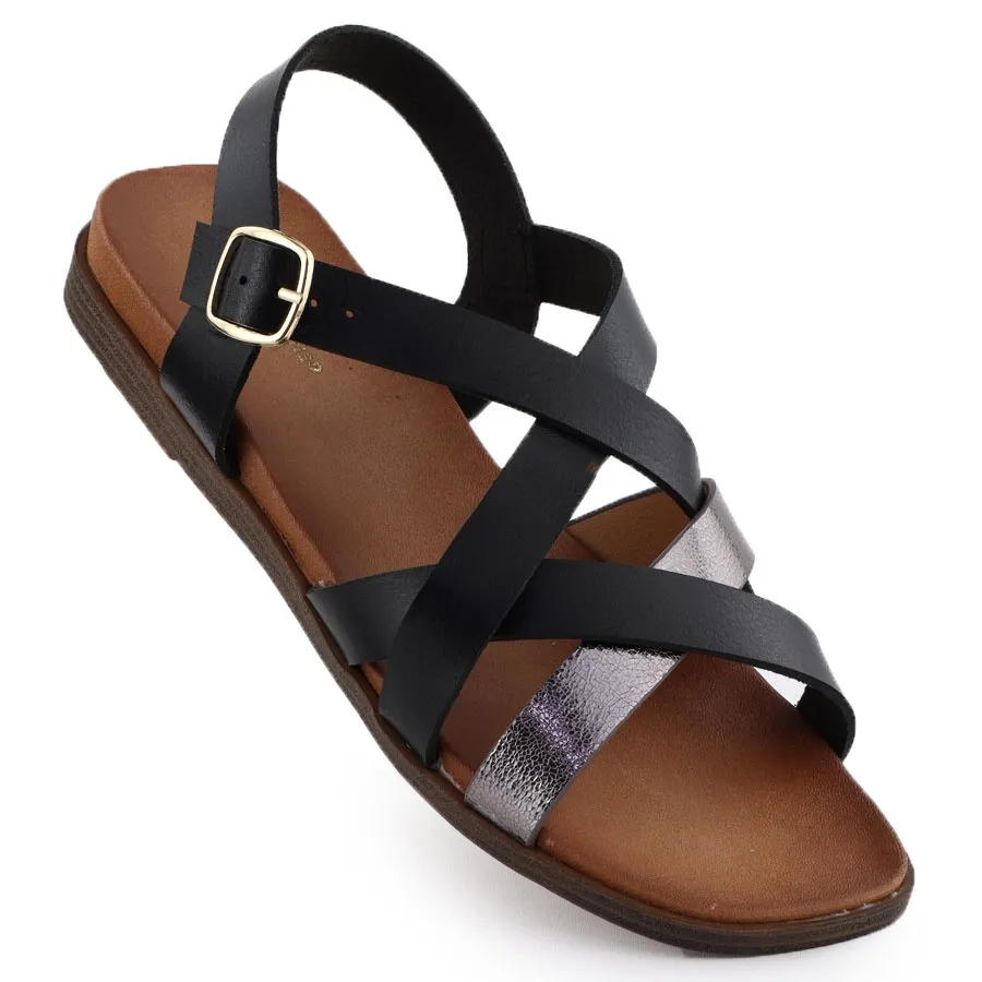 Sandały damskie płaskie rzymianki czarne Sergio Leone SK088H