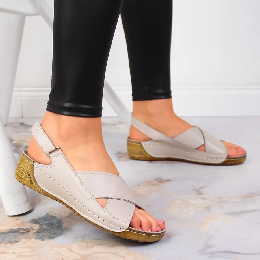 Skórzane sandały damskie na rzep szare T.Sokolski L311