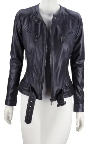 1 789,00 złSAR073 – niebieska kurtka skórzana damska z paskiem na klamrę DORJAN