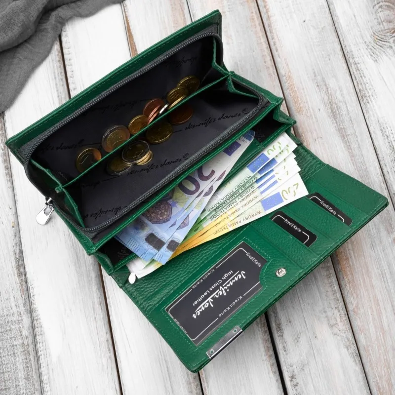 Portfel damski skórzany lakierowany zielony z tłoczeniem croco SP-16-CGRN