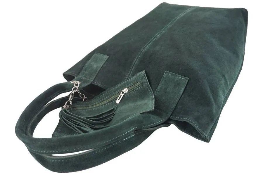 Shopper bag – torebka damska zamszowa została wykonana ze skóry naturalnej miękkiej. Propozycja sklepu internetowego – torebka, która uzupełni swobodne stylizacje do pracy. Miękka zamszowa skóra naturalna, wygodnej długości uchwyty, modny frędzelek – wszystko to gwarantuje, iż Twoja stylizacja będzie wyjątkowa. Shopper bag – torebka damska zamszowa wyróżnia się w kolekcji worków skórzanych pięknymi barwami i modnym fasonem. Skorzystaj z naszej oferty i odbierz rabat -15% za zapisanie się do newslettera.