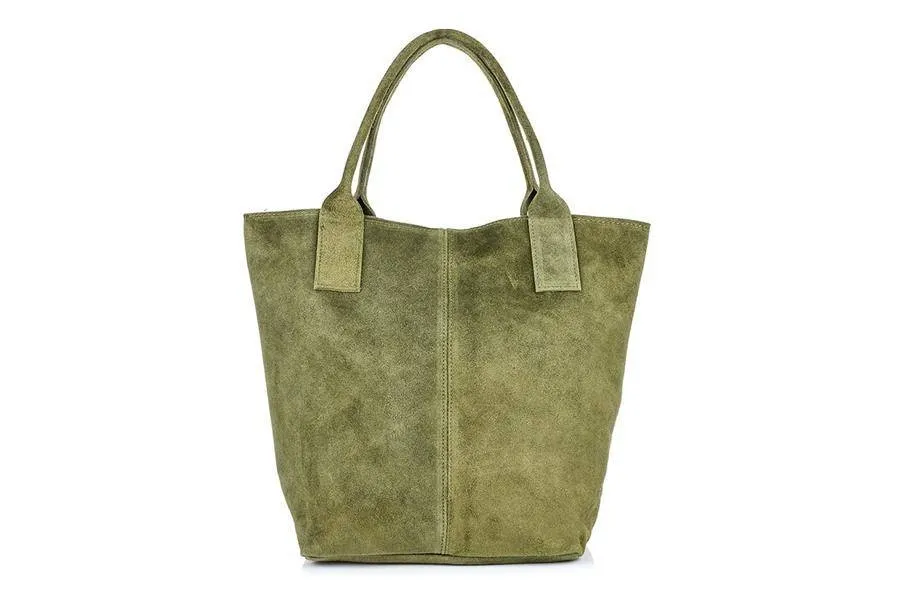 - Kieszenie wewnętrzne: – 1 mała, boczna, zasuwana kieszonka; – 1 mała, skórzana saszetka o wymiarach: ok.13 cm x ok.19 cm;