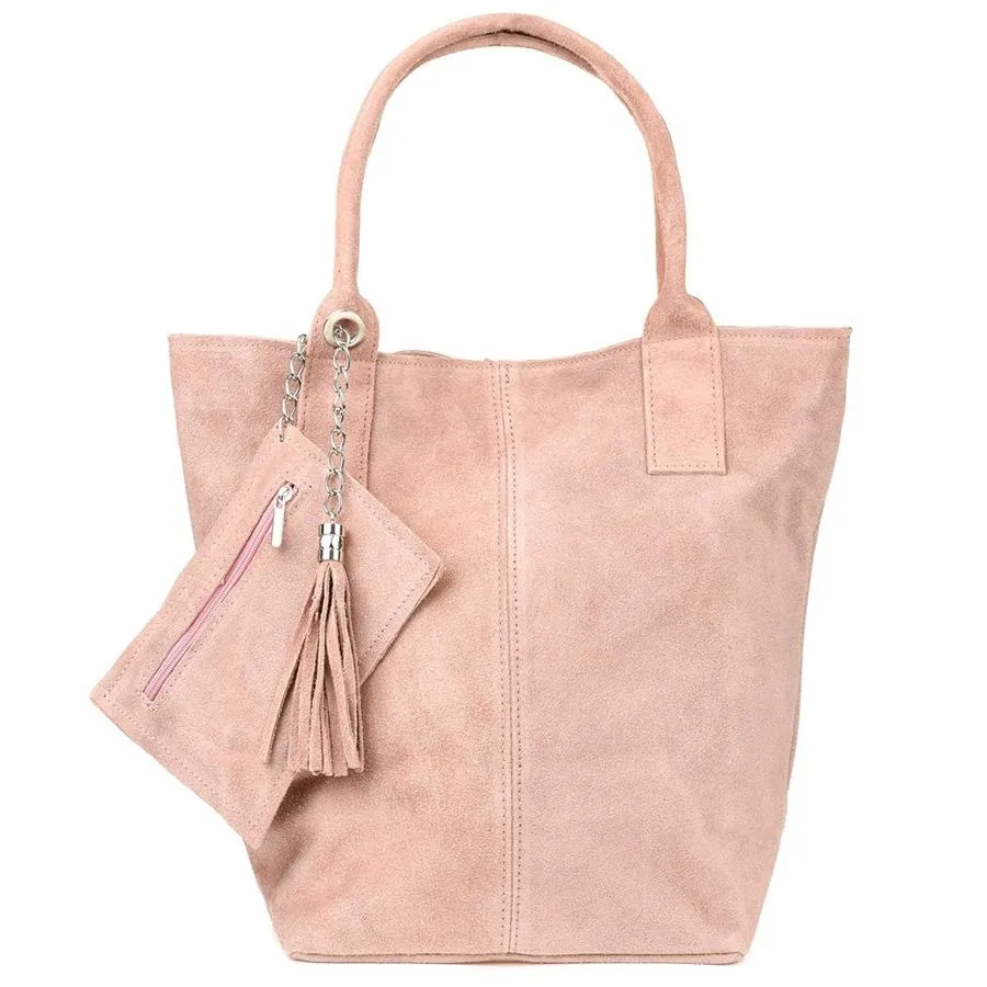 Dno torebki zostało usztywnione, wnętrze jest wyścielone podszewką, wewnątrz znajduje się dodatkowa kieszeń na suwak o wymiarach 16 cm x 20cm .